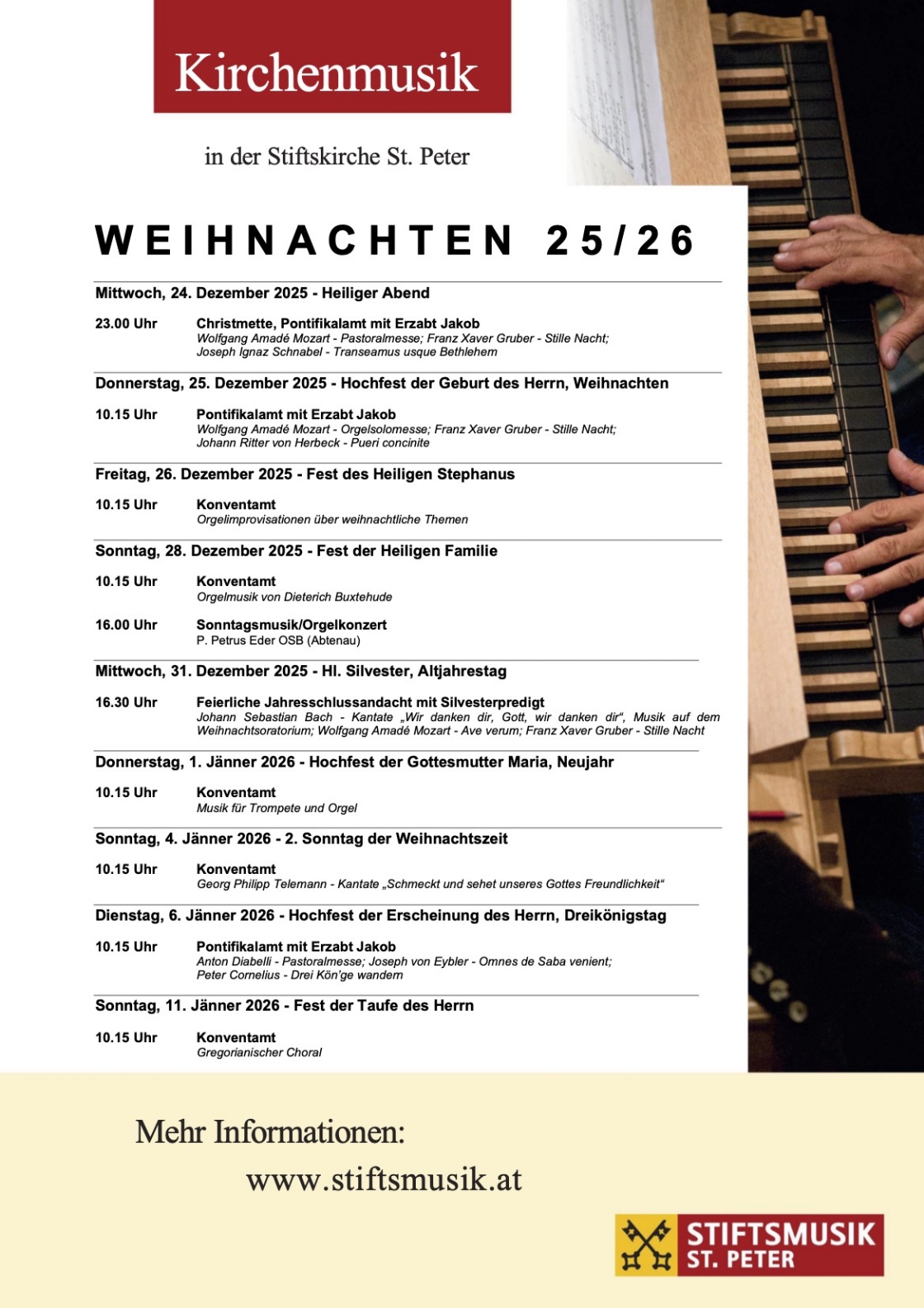Wir laden Sie sehr herzlich zu den Gottesdiensten und Veranstaltungen in das Stift St. Peter ein!